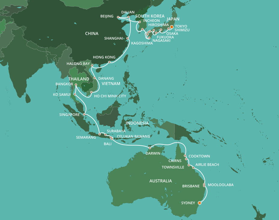 Benoa is located on the southern tip of Bali and is the key gateway for travellers exploring this Indonesian island. The port is approximately 12 kms (7.5 miles) from the bustling city of Denpasar - a journey of around 30 minutes. You'll dock directly at the terminal, allowing easy access to transport options.