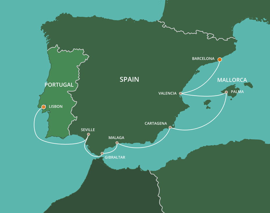 Málaga is the lively capital of the Costa del Sol, famed for its beaches and mild climate. It is a city of narrow streets, whitewashed houses, churches and sunny plazas. Málaga also serves as a popular starting point for excursions to splendid Granada and the famed Alhambra. Ships will dock at the Málaga cruise terminal.