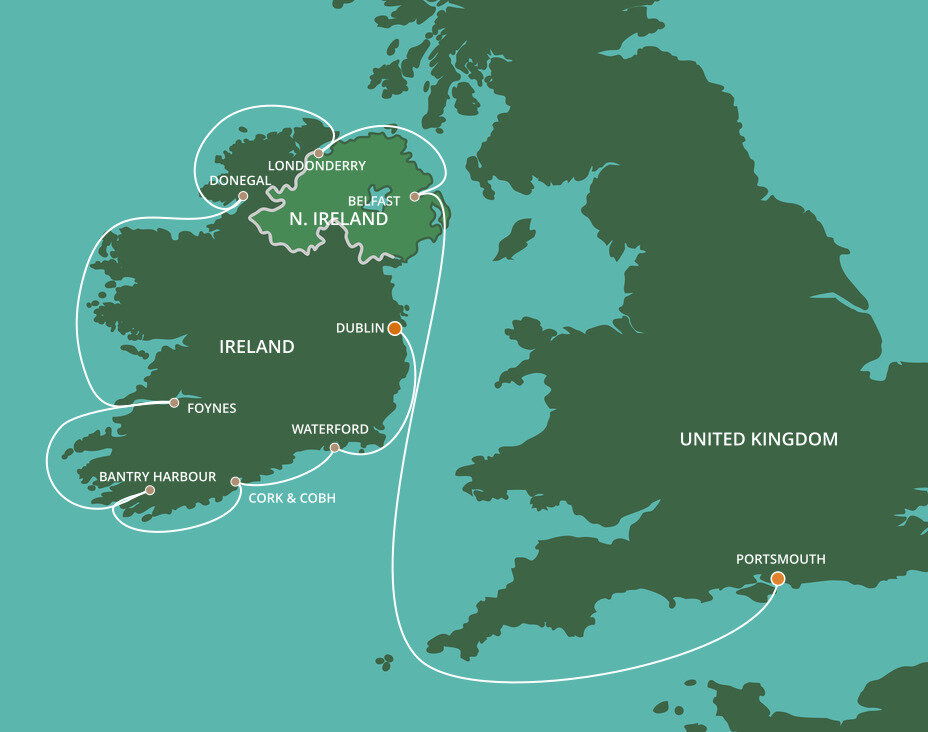 The charming fishing village of Killybegs is the gateway to County Donegal. A place far from tourist hot spots with world-class golf, striking promontories jutting into the ocean, historic castles and charming coastal pubs. Ships will dock in Killybegs Harbour.
