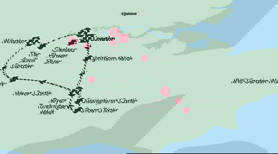 This morning our road will turn east to Sissinghurst Castle Garden, an iconic retreat that's renowned for its romantic design and colourful rose arrangements. Then, we'll swap sculpted layouts for the quaint, rustic charm of Great Dixter: the family home of famed English gardener Christopher Lloyd. Here we'll discover how the sublime arts-and-crafts-style gardens inspired Lloyd throughout his career – with time to admire the estate's vibrant grounds and historic buildings. Upon returning to Tunbridge Wells, we'll have the evening to spend at our leisure. Stay: Royal Wells Hotel (or similar) (B)
