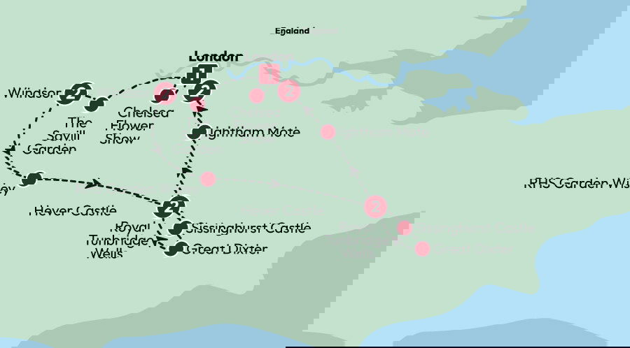 This morning our road will turn east to Sissinghurst Castle Garden, an iconic retreat that's renowned for its romantic design and colourful rose arrangements. Then, we'll swap sculpted layouts for the quaint, rustic charm of Great Dixter: the family home of famed English gardener Christopher Lloyd. Here we'll discover how the sublime arts-and-crafts-style gardens inspired Lloyd throughout his career – with time to admire the estate's vibrant grounds and historic architecture. Tonight, we'll clink glasses over a farewell dinner back in Tunbridge Wells. Stay: Royal Wells Hotel (or similar) (B/D)
