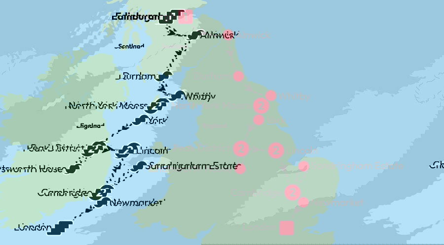 The historic Scottish city of Edinburgh is where we'll meet ahead of our incredible journey into Eastern England. Get to know your expert Tour Leader and travel companions better over tonight's delicious welcome meal. Stay: Malmaison Edinburgh (or similar) (D)