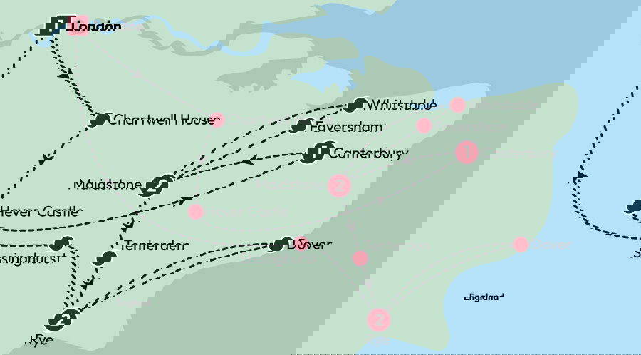 Today we'll dedicate some time to exploring Rye's cobbled lanes and timber-clad houses, experiencing some of the magic that inspired writers and artists such as Henry James and Paul Nash. After tracing the shoreline and spotting those famous white cliffs, we'll arrive at Dover Castle: the gateway to the English coast.