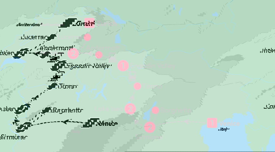 Today our path will lead us to Tirano, one of the prettiest towns along the Switzerland-Italy boundary. We'll enjoy some free time to explore before embarking on a spectacular tour highlight: the Bernina Express. One of the world's most iconic railway journeys, our train will climb steadily into the Swiss Alps, with spectacular views of soaring mountain peaks and awe-inspiring glaciers in every direction. Our final stop of the day will be the Engadin Valley, where we'll be welcomed into Switzerland with an outlook of pristine scenery and warming local cuisine. Stay: Hotel Reine Victoria (or similar) (B)