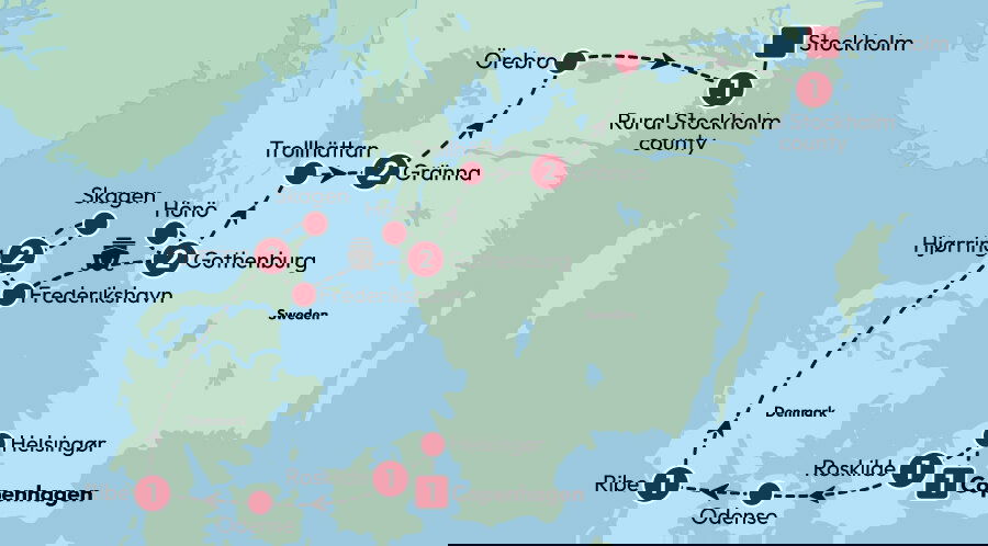 This morning, we'll take to the water by ferry, imagining the Vikings and their legendary ships from Day 2. Our journey won't be as treacherous as we make our way to Gothenburg – a city that basks in light by night and showcases its colourful buildings by day. Our Tour Leader will guide us through the Swedish city's streets, pointing out the 17th century structures which remain to this day alongside enchanting gardens filled with mesmerising colours and bewitching scents. The rest of the day is at your leisure. Stay: ProfilHotels Opera (or similar) (B)
