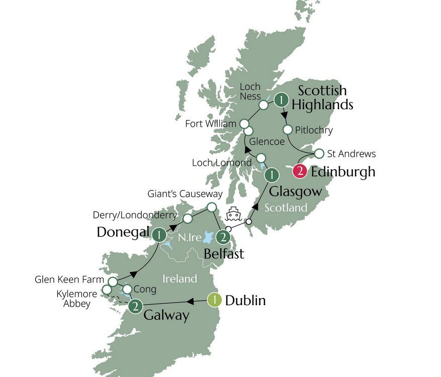 Imbued with Gaelic spirit, your holiday has come to an end. Bid your new friends a fond farewell as you prepare for your return journey home. (B)