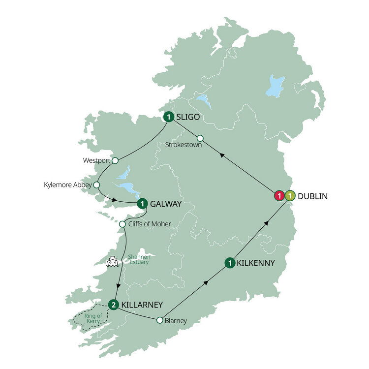 Head to Killarney where you'll relive the highlights of the day over a Dine-Around evening of local cuisine. You also have your pick of Optional Experiences including a Celtic Steps performance or a Gaelic Roots show of song and dance. (B/D) Stay: The Gleneagle, Killarney