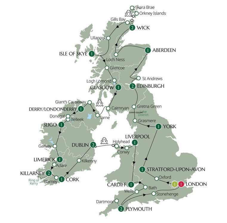 Later, continue to Londonderry, Northern Ireland's only remaining walled city, where centuries of history are preserved within its original 17th-century ramparts. (B/D) Stay: Da Vinci's, Derry/Londonderry