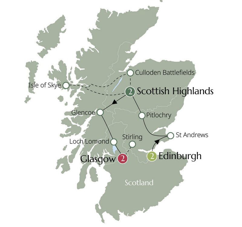 The rugged beauty and warmth of Scotland's people forever in your memory, enjoy one last hearty breakfast with your travel companions before wishing them and your Travel Director a fond farewell. (B)