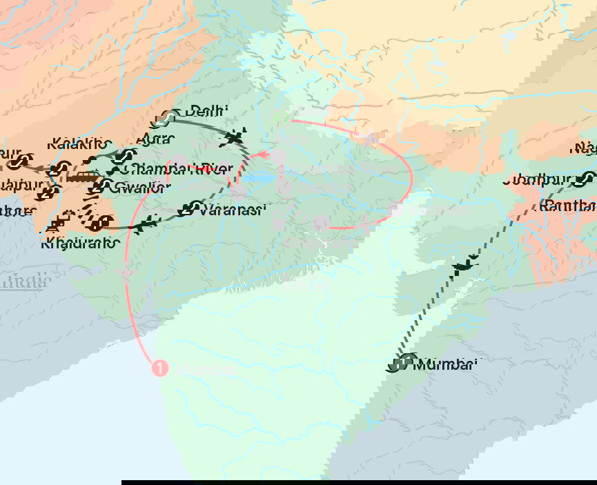 Today, we fly to Mumbai, India's financial and entertainment capital. Originally a cluster of seven islands gifted to King Charles II in 1661, Mumbai has evolved into a dynamic metropolis that reflects the spirit of modern India. It's a city of contrasts, where colonial architecture meets contemporary skyscrapers and vibrant street life coexists with serene coastal views.