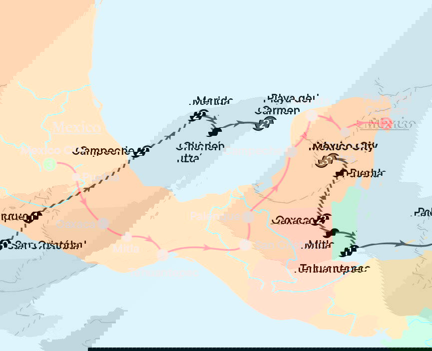 We begin our adventure in Mexico City, the economic, industrial and cultural centre of Mexico! Sprawling across a valley, encircled by volcanoes and mountains and atop an ancient Aztec civilisation, Mexico City is North America's highest city and one of the world's most densely populated. With a long and fascinating history that runs from ancient indigenous civilisations through to the invasion of the Conquistadors and subsequent colonial rule, Mexico City boasts an array of fascinating sights and attractions.