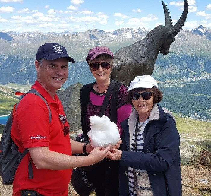 After lunch, we resume our sightseeing by cable car, riding up to Corviglia summit on the eastern slopes of Piz Nair, at an elevation of 2,486 metres. Here at the highest point, we'll be treated to spectacular sweeping views over St Moritz and the surrounding region.