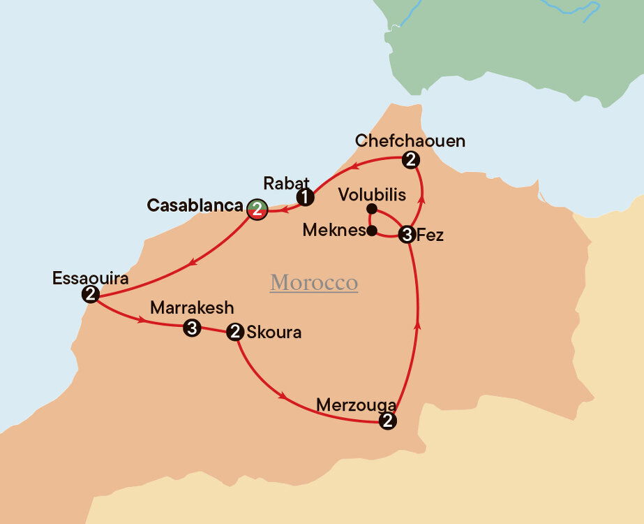 Our tour concludes after breakfast this morning. We bid farewell to our new friends and to mesmerising Morocco. We hope you leave with the memories of a lifetime.