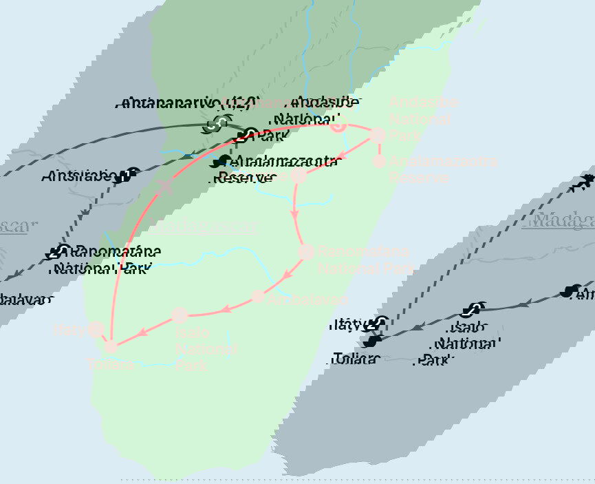 Can't get enough of Antananarivo? The afternoon is all yours to explore the city at your own pace. Whether you're discovering hidden gems or simply sitting back and relaxing, it's a perfect way to end our journey through breathtaking Madagascar! Tonight, we'll enjoy a delicious group farewell dinner.