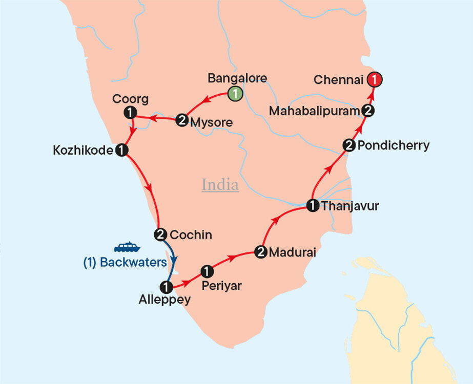 Our tour concludes after breakfast this morning. We hope you leave with a heart full of memories, a camera full of moments and new friends to cherish from this wonderful journey through South India.