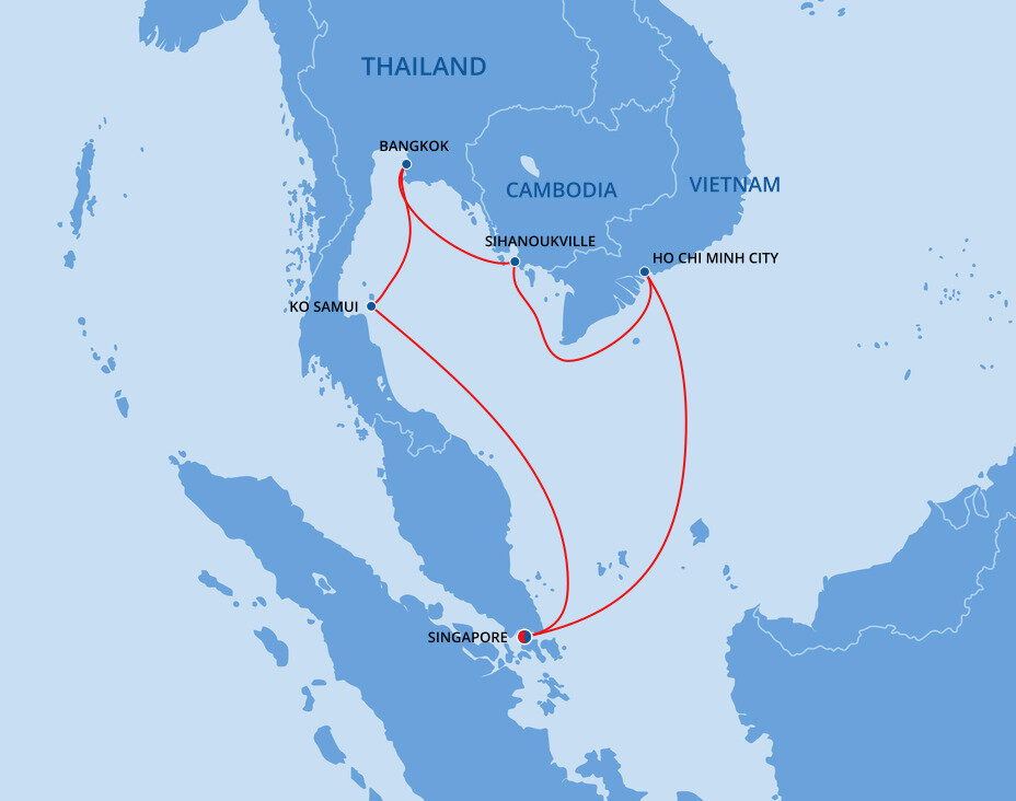 Laem Chabang is the main port for cruises to Bangkok, situated about 120 kilometers (75 miles) southeast of the city, typically a 1.5 to 2-hour drive depending on traffic. For those looking to explore nearby attractions, Pattaya is only 30 kilometers (18 miles) away, a quick 30-40 minute drive. Pattaya offers beautiful beaches, vibrant nightlife, and cultural sites like the Sanctuary of Truth.