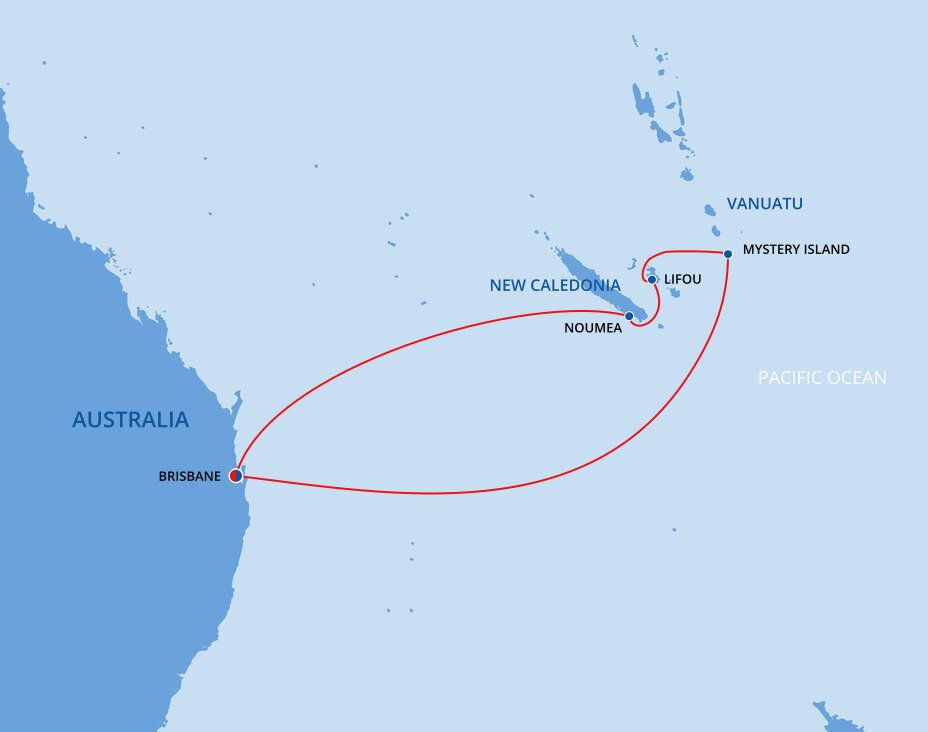The capital of New Caledonia, Noumea is a little piece of France in the middle of the Pacific Ocean. It has all the flavour and ambience of a bustling, sophisticated provincial french town with the friendly charms, adventure and heavenly climate of the pacific islands. Ships will dock at the port.