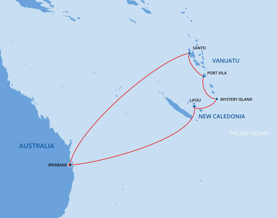 Lifou is the largest island in the archipelago of coral atolls known as the Loyalty Islands. Long stretches of white sand beach, small coves, limestone caves, grottos and imposing cliffs give the island one of the most dramatic landscapes in the pacific. Ships will anchor offshore and tenders will be provided to the shore.
