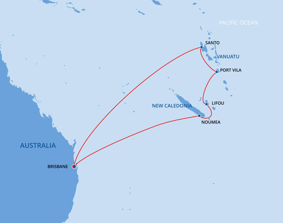 The capital of New Caledonia, Noumea is a little piece of France in the middle of the Pacific Ocean. It has all the flavour and ambience of a bustling, sophisticated provincial french town with the friendly charms, adventure and heavenly climate of the pacific islands. Ships will dock at the port.
