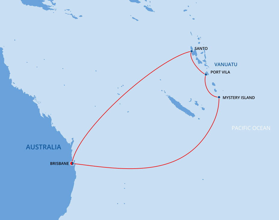 Formed by volcanoes, Santo (also known as Luganville) is the second largest city in the island nation of Vanuatu and is home to beautiful beaches, towering mountains, natural blue holes and fascinating WWII history. Ships will dock at the Luganville port.