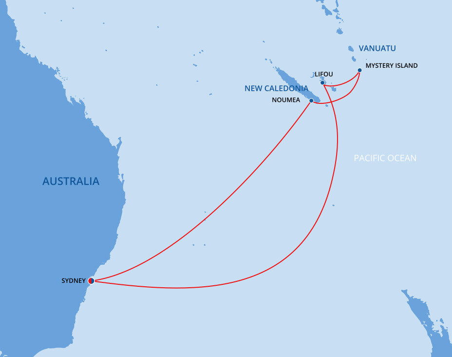 The capital of New Caledonia, Noumea is a little piece of France in the middle of the Pacific Ocean. It has all the flavour and ambience of a bustling, sophisticated provincial french town with the friendly charms, adventure and heavenly climate of the pacific islands. Ships will dock at the port.