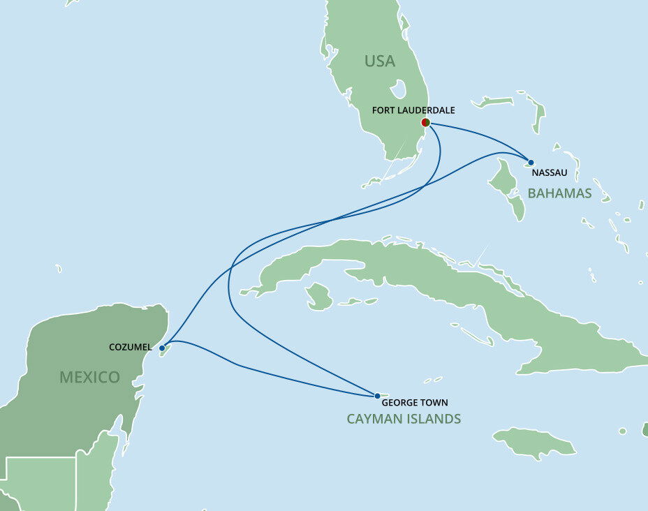 In the 1800s, William Lauderdale built a fort. Today, 16 million visitors come each year for miles of broad white sandy beaches, dozens of lush green golf courses, and Caribbean cruises from Fort Lauderdale. Stroll the famous beachfront promenade, just 15 minutes from the port, and plunge into the warm Atlantic. You’ll sail from Port Everglades. Fort Lauderdale-Hollywood International Airport is only a ten-minute drive from Port Everglades, and shuttle buses can take you from the airport to the cruise port. Free Wi-Fi and parking facilities are available at the port.