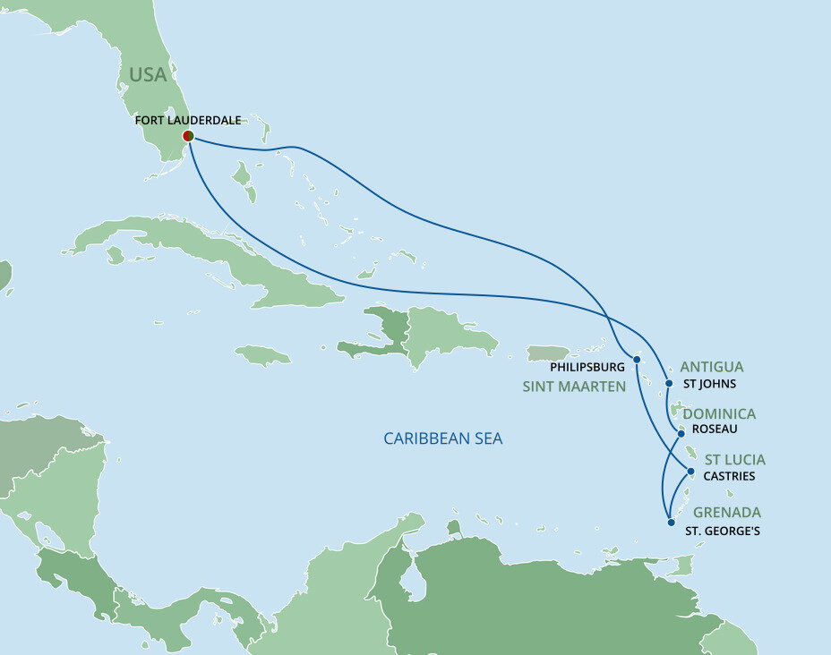 In the 1800s, William Lauderdale built a fort. Today, 16 million visitors come each year for miles of broad white sandy beaches, dozens of lush green golf courses, and Caribbean cruises from Fort Lauderdale. Stroll the famous beachfront promenade, just 15 minutes from the port, and plunge into the warm Atlantic. You’ll sail from Port Everglades. Fort Lauderdale-Hollywood International Airport is only a ten-minute drive from Port Everglades, and shuttle buses can take you from the airport to the cruise port. Free Wi-Fi and parking facilities are available at the port.