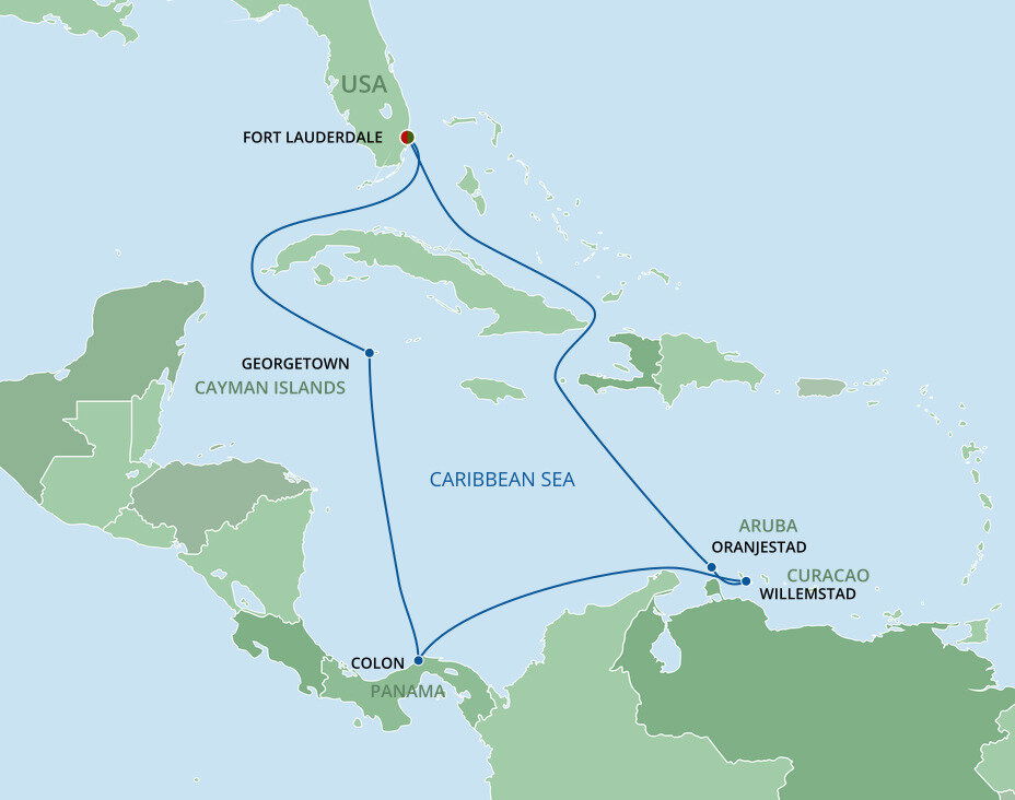 In the 1800s, William Lauderdale built a fort. Today, 16 million visitors come each year for miles of broad white sandy beaches, dozens of lush green golf courses, and Caribbean cruises from Fort Lauderdale. Stroll the famous beachfront promenade, just 15 minutes from the port, and plunge into the warm Atlantic. You’ll sail from Port Everglades. Fort Lauderdale-Hollywood International Airport is only a ten-minute drive from Port Everglades, and shuttle buses can take you from the airport to the cruise port. Free Wi-Fi and parking facilities are available at the port.