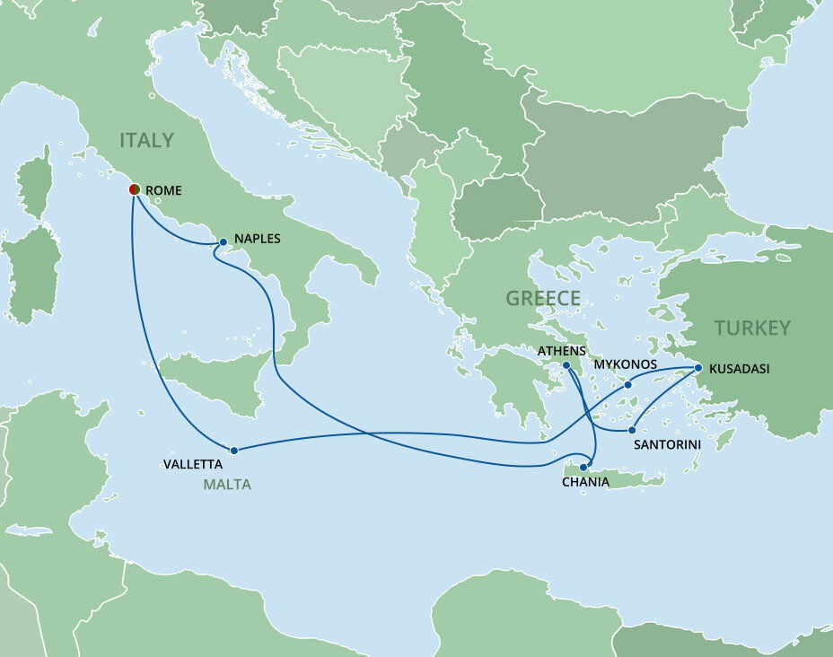 Souda Bay’s huge natural harbour is a spectacular entrance to Greece's largest island, Crete. Packed with beautiful beaches and rich maritime history, Crete is also a treasure trove of well-stocked museums, rich archaeological sites and charming Venetian fishing towns. Ships will dock at the Port of Souda.