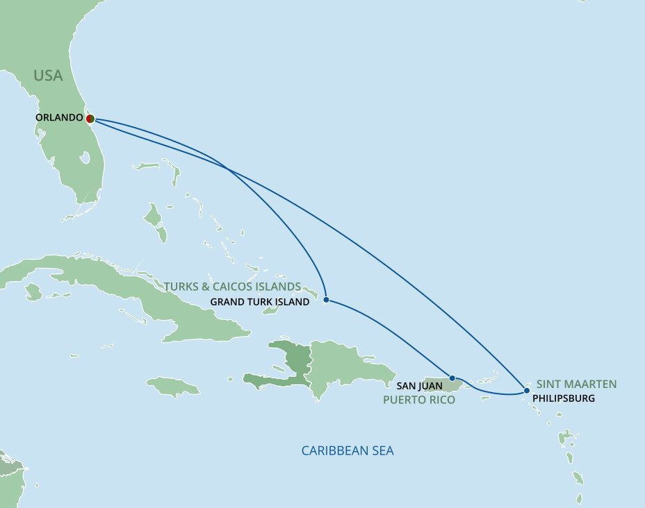 Beach masterpieces of silky white sand and sparkling water shifting from turquoise to royal blue welcome you to idyllic Grand Turk. The capital of the Turks and Caicos Islands is a small island bursting with turn-of-the-century charm, retaining the look and feel of the Caribbean 40 years ago. Ships will dock at the Grand Turk Cruise Centre.