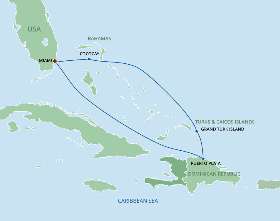 This multicultural city where the sun rules supreme is more than just a cruise port. Palm-lined causeways stretch across luminous Biscayne Bay as Miami rises in a gleam of glass towers, Art Deco curves, and tropical colour. Along Ocean Drive in South Beach, pastel facades from the 1930s glow beneath the Florida sun, while nearby Little Havana hums with domino parks, cigar shops, and the aroma of Cuban coffee. Beyond the shoreline, calm waters, yacht marinas, and breezy promenades frame a city shaped by Caribbean rhythms and sunlit coastal glamour.