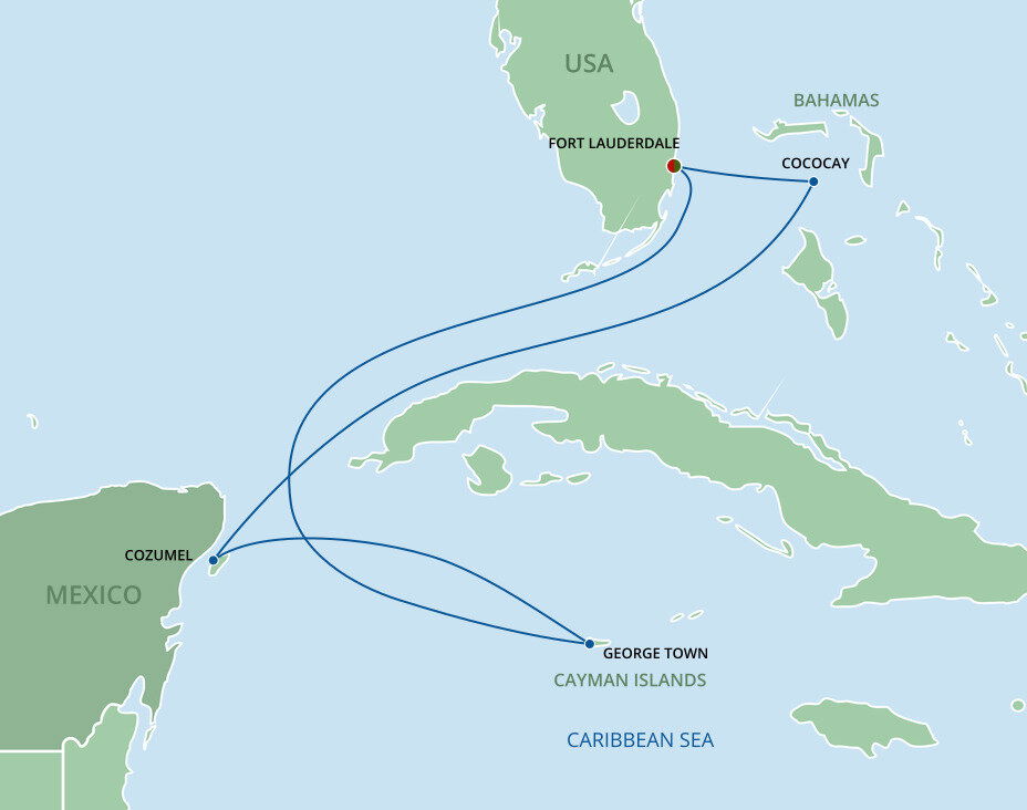 In the 1800s, William Lauderdale built a fort. Today, 16 million visitors come each year for miles of broad white sandy beaches, dozens of lush green golf courses, and Caribbean cruises from Fort Lauderdale. Stroll the famous beachfront promenade, just 15 minutes from the port, and plunge into the warm Atlantic. You’ll sail from Port Everglades. Fort Lauderdale-Hollywood International Airport is only a ten-minute drive from Port Everglades, and shuttle buses can take you from the airport to the cruise port. Free Wi-Fi and parking facilities are available at the port.