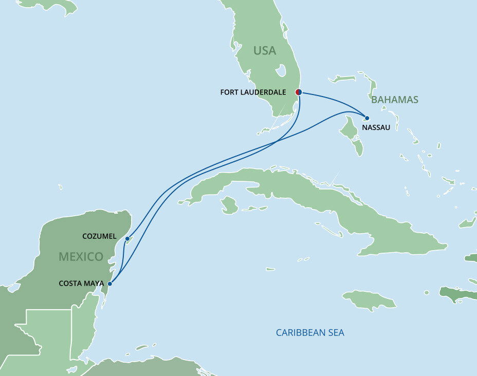 In the 1800s, William Lauderdale built a fort. Today, 16 million visitors come each year for miles of broad white sandy beaches, dozens of lush green golf courses, and Caribbean cruises from Fort Lauderdale. Stroll the famous beachfront promenade, just 15 minutes from the port, and plunge into the warm Atlantic. You’ll sail from Port Everglades. Fort Lauderdale-Hollywood International Airport is only a ten-minute drive from Port Everglades, and shuttle buses can take you from the airport to the cruise port. Free Wi-Fi and parking facilities are available at the port.