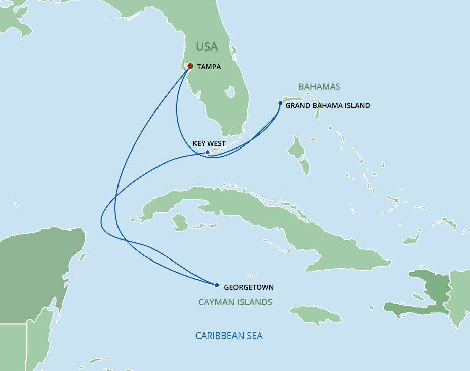 The southernmost point of the United States, Key West is known for its glorious sunshine, wild beaches, historical charm and carefree attitude. It boasts year-round tropical weather, and some of the clearest snorkelling and most preserved coral reef structures in the world. Ships will dock at this port.