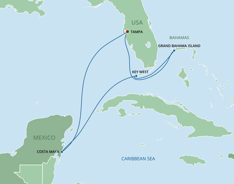 The southernmost point of the United States, Key West is known for its glorious sunshine, wild beaches, historical charm and carefree attitude. It boasts year-round tropical weather, and some of the clearest snorkelling and most preserved coral reef structures in the world. Ships will dock at this port.