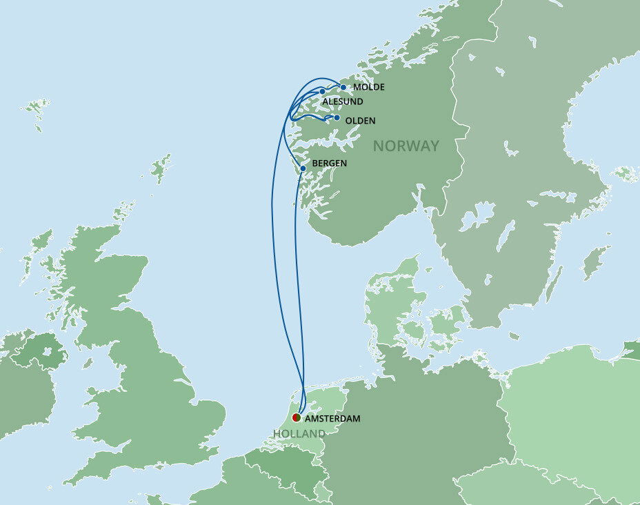 Known as the Town of Roses, Molde offers all of the stunning beauty associated with Norway. White clapboard houses sit alongside a sparkling fjord overlooking the city's famous panoramic view of 222 mountain peaks. Ships will dock at the Port of Molde & Romsdal.