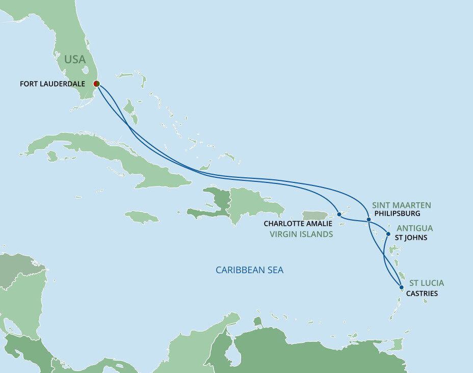 In the 1800s, William Lauderdale built a fort. Today, 16 million visitors come each year for miles of broad white sandy beaches, dozens of lush green golf courses, and Caribbean cruises from Fort Lauderdale. Stroll the famous beachfront promenade, just 15 minutes from the port, and plunge into the warm Atlantic. You’ll sail from Port Everglades. Fort Lauderdale-Hollywood International Airport is only a ten-minute drive from Port Everglades, and shuttle buses can take you from the airport to the cruise port. Free Wi-Fi and parking facilities are available at the port.