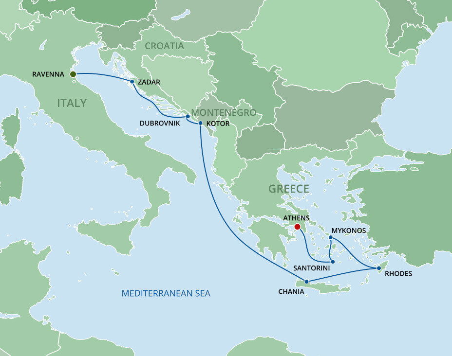 Souda Bay’s huge natural harbour is a spectacular entrance to Greece's largest island, Crete. Packed with beautiful beaches and rich maritime history, Crete is also a treasure trove of well-stocked museums, rich archaeological sites and charming Venetian fishing towns. Ships will dock at the Port of Souda.