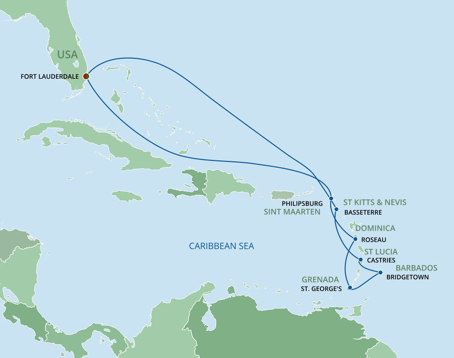In the 1800s, William Lauderdale built a fort. Today, 16 million visitors come each year for miles of broad white sandy beaches, dozens of lush green golf courses, and Caribbean cruises from Fort Lauderdale. Stroll the famous beachfront promenade, just 15 minutes from the port, and plunge into the warm Atlantic. You’ll sail from Port Everglades. Fort Lauderdale-Hollywood International Airport is only a ten-minute drive from Port Everglades, and shuttle buses can take you from the airport to the cruise port. Free Wi-Fi and parking facilities are available at the port.