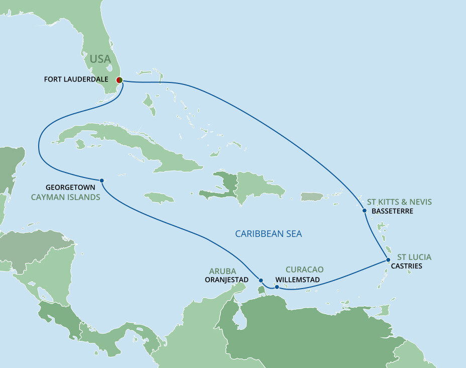In the 1800s, William Lauderdale built a fort. Today, 16 million visitors come each year for miles of broad white sandy beaches, dozens of lush green golf courses, and Caribbean cruises from Fort Lauderdale. Stroll the famous beachfront promenade, just 15 minutes from the port, and plunge into the warm Atlantic. You’ll sail from Port Everglades. Fort Lauderdale-Hollywood International Airport is only a ten-minute drive from Port Everglades, and shuttle buses can take you from the airport to the cruise port. Free Wi-Fi and parking facilities are available at the port.