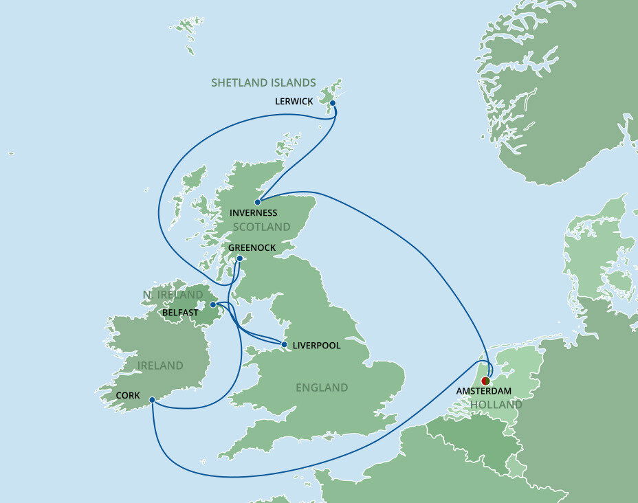 Lerwick, the capital of the Shetland Island Archipelago, offers stone age ruins, heather-covered moors and rugged Scottish highlands. With its dramatic cliffs, Grand Victorian houses, charming Shetland ponies, and Nordic heritage Lerwick allows for hours of entertainment. Smaller ships will dock at the Port of Lerwick, while larger ships will anchor offshore.