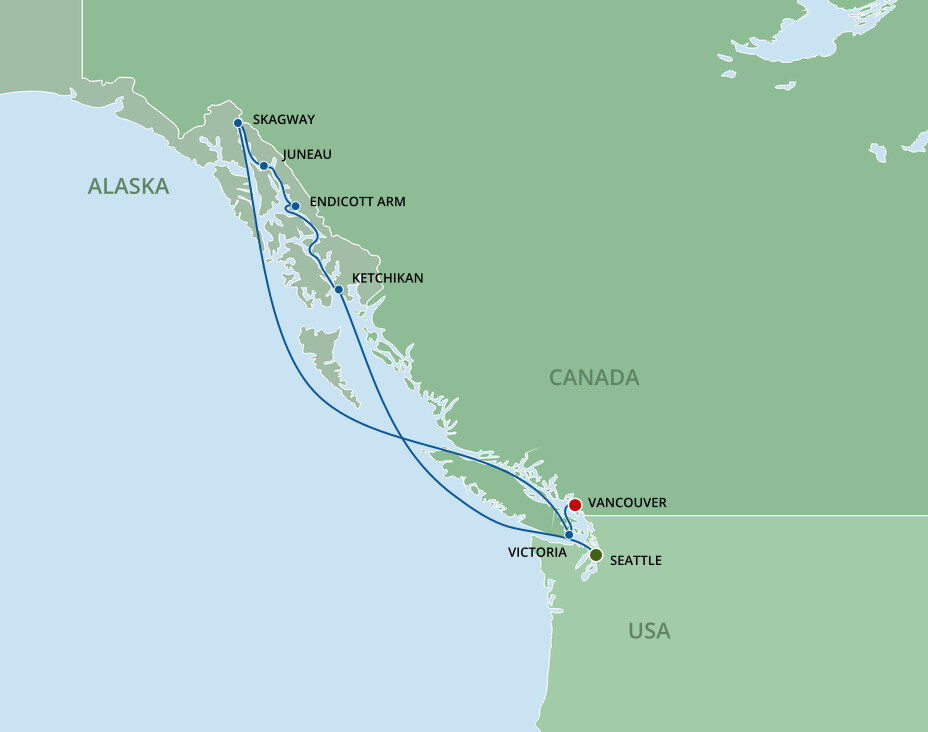 Protected by the Tongass National Forest, Endicott Arm shelters diverse wildlife, from bears and deer to seals and seabirds. Glide through the fjord, encountering lush forests, cascading waterfalls, and snow-capped mountains, offering an immersive snapshot of Alaska's untamed beauty.
