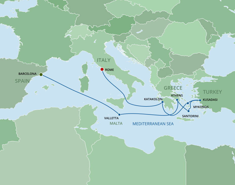 Welcome to Barcelona! Renowned for its unique architecture and vibrant culture. If you have time before your cruise departs today, take a stroll down Las Ramblas, a lively street filled with street performers, shops, and cafes, leading to the historic Gothic Quarter. Or for a taste of local life, explore the bustling La Boqueria market, offering a variety of fresh produce and local delicacies.