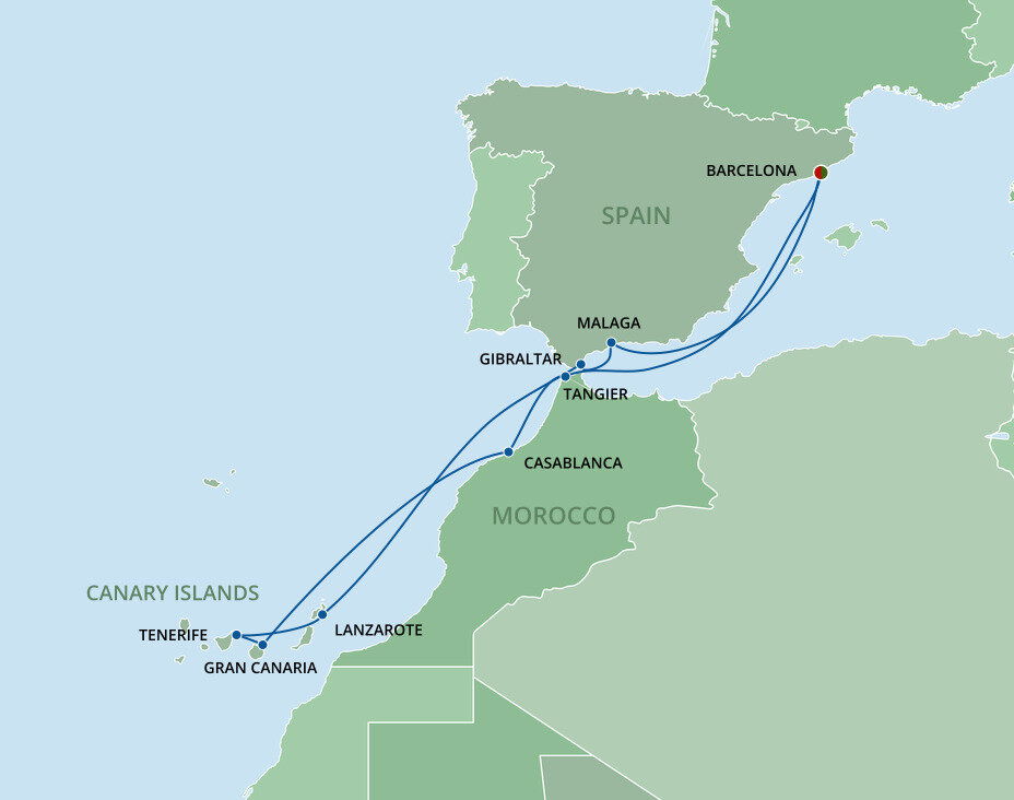 Málaga is the lively capital of the Costa del Sol, famed for its beaches and mild climate. It is a city of narrow streets, whitewashed houses, churches and sunny plazas. Málaga also serves as a popular starting point for excursions to splendid Granada and the famed Alhambra. Ships will dock at the Málaga cruise terminal.