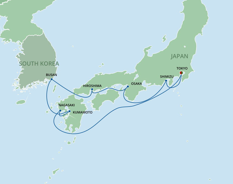 Osaka's Tempozan Cruise Terminal is located about 15 km (9 miles) from Osaka city center, a 30-minute drive. Kyoto is roughly 60 km (37 miles) away.