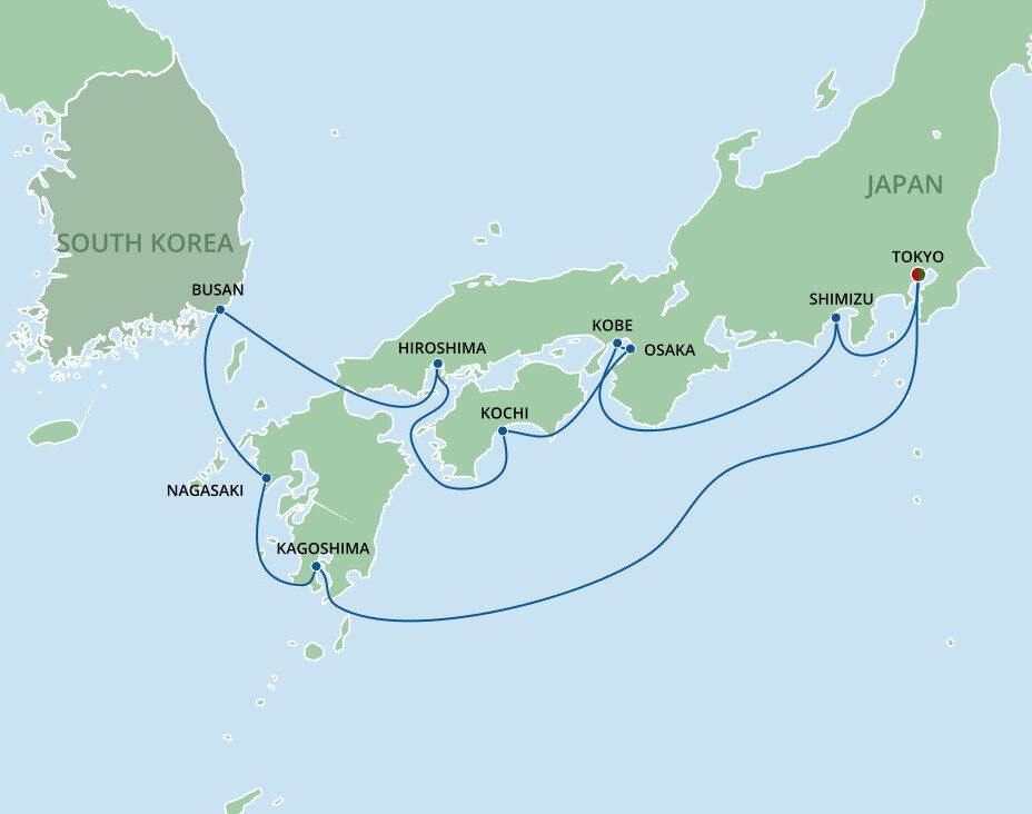 Osaka's Tempozan Cruise Terminal is located about 15 km (9 miles) from Osaka city center, a 30-minute drive. Kyoto is roughly 60 km (37 miles) away.