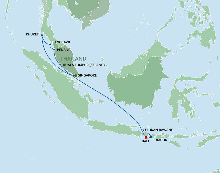 Malaysia’s dynamic capital is a melting pot of skyscrapers, Islamic architecture and British Colonial buildings offering a futuristic cityscape with an enduring nod to yesteryear. Home to some of Asia’s most opulent shopping malls, Kuala Lumpur’s skyline is dominated by the famous Petronas and Menara Kuala Lumpur Towers. Ships will dock in Port Klang.