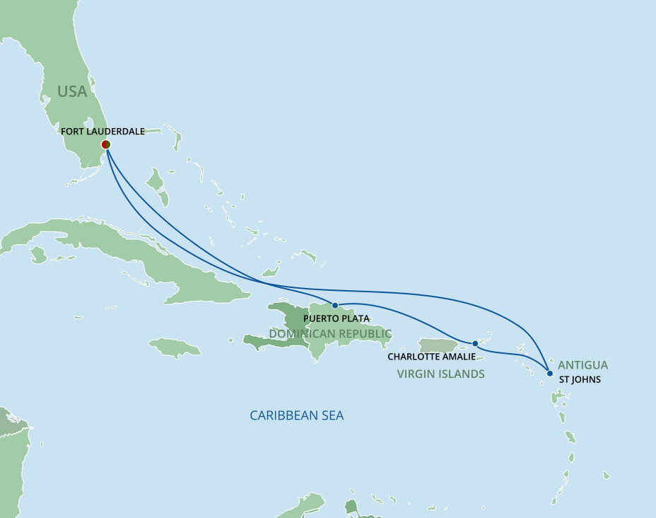In the 1800s, William Lauderdale built a fort. Today, 16 million visitors come each year for miles of broad white sandy beaches, dozens of lush green golf courses, and Caribbean cruises from Fort Lauderdale. Stroll the famous beachfront promenade, just 15 minutes from the port, and plunge into the warm Atlantic. You’ll sail from Port Everglades. Fort Lauderdale-Hollywood International Airport is only a ten-minute drive from Port Everglades, and shuttle buses can take you from the airport to the cruise port. Free Wi-Fi and parking facilities are available at the port.