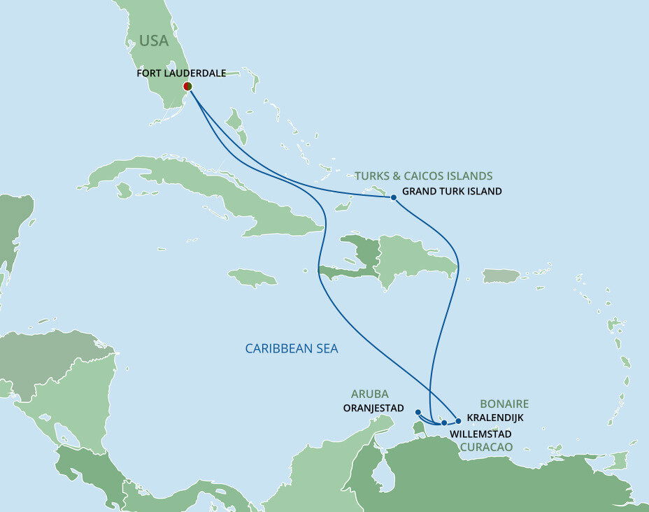 Beach masterpieces of silky white sand and sparkling water shifting from turquoise to royal blue welcome you to idyllic Grand Turk. The capital of the Turks and Caicos Islands is a small island bursting with turn-of-the-century charm, retaining the look and feel of the Caribbean 40 years ago. Ships will dock at the Grand Turk Cruise Centre.