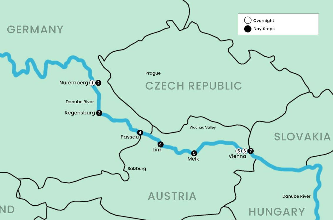 Sailing into Regensburg along the Danube leads you into one of Europe’s most beautifully preserved medieval cities. Designated a UNESCO World Heritage Site, Regensburg’s Old Town is a maze of cobblestone lanes and storied architecture, where each corner reveals another chapter from centuries past. Cross the iconic Stone Bridge and take in panoramic views of the river as it winds through the heart of the city’s vibrant streetscape.